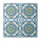 Elegant and beautiful decorative tile in Mediterranean style featuring geometric shapes in blue, white and gold shades.