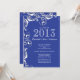Start off your classy class of 2013 graduation event right with our elegant, classic & stylish white vintage flourish scroll design graduation party announcement invitation set on a blue background. modern graduation invitation for a high school graduation or college graduation. Easy to personalise, just fill in your grad information and you're all set to go. Visit our shop at www.celebrateitgraduations.com for a large assortment of trendy graduation invitations!