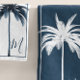 Elegant Blue & White Palm Tree Monogram Bath Towe Towel Set