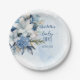 Elegant Blue Winter Floral Boy Baby Shower Paper Plate