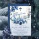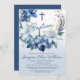 Elegant Blue Winter Floral Boy Baptism Invitation