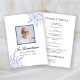 Remember your loved one and celebrate their life with the pretty Elegant Blue Winter Snowflakes Funeral Service Program. This elegant custom wintery memorial service timeline features intricate blue snowflakes adorning the corners with a white background. Customise it with a picture of the deceased, personal details and order of ceremony of their December, January or February celebration of life church service.