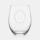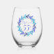 Elegant Blue Wreath 55th Birthday Party Stemless Wine Glass