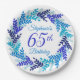 Elegant Blue Wreath 65th Birthday Paper Plate
