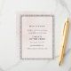The Laced wedding invitation suite features a subtle blush pink watercolor background with a delicate black lace oval surrounding traditional text, a fancy script, and proper etiquette. The suite comes with all additional pieces, including reply cards, reception card, direction enclosures, belly bands, and more. Day-of items, including favour tags, wine labels, napkins, and table numbers are also available. Customise the text and text colours to be any colour you'd like.