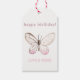 NewParkLane - Simple but elegant gift tags, with a blush pink and beige watercolor butterfly, with 'happy birthday' wish, in modern sophisticated typography.