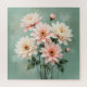 This artwork features five soft blush chrysanthemum flowers delicately painted with refined detail and graceful depth, set against a calm, muted green background. The gentle contrast creates a serene, luxurious feeling that brings warmth and quiet elegance to any space. Designed to be versatile, this floral artwork looks beautiful as wall art, posters, canvas prints, mugs, pillows, and thoughtful everyday gifts.