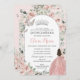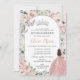 Elegant Blush Floral Princess Silver Quinceañera Invitation