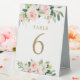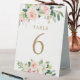 Elegant Blush Floral Wedding Table Numbers Tent