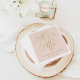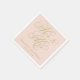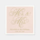 Wedding napkins feature "Mr. & Mrs." in a gold coloured calligraphy script font with custom monogram design that can be personalised with the bride and groom's married name and wedding date. Blush pink background colour can be customised.