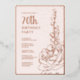 Celebrate a milestone in shimmering style with this elegant 70th birthday invitation featuring real foil rose floral accents. With this customisable template you can change the number of the birthday as well as all of the details and whether you want gold, rose gold or silver foil. Designed for those who love a touch of glam, this invitation offers space for an optional photo and personalised message on the back—perfect for sharing memories or adding a heartfelt note. Whether you're planning a chic dinner party or a lively bash, this design sets the tone for a celebration that's bold, beautiful, and unforgettable.