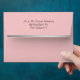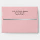 Elegant invitation envelope done in blush pink, with a thin silver like border, on the back flap and on the bottom front. A silvertone foil like lining on the inside completes this versatile envelope. Personalise the return address to suit your needs.