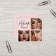Elegant Blush Pink Black Script 3 Photo Makeup Square Business Card