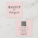 Elegant Blush Pink Black Script QR Code Makeup Square Business Card