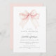 Minimal baby shower invitation that features an elegant pink bow and pink background.
