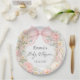 Elegant Blush Pink Bow Floral Baby Shower Paper Plate