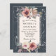 Elegant fall floral Christian wedding invitation depicts beautiful floral watercolors designs with blush pink flowers on a cream coloured frame and dark navy blue background. It features inspirational introduction from Bible Verse Ephesians 5:31, "Two Shall Become One." If there is something you don't see or if you would like changes please contact me with the chat button on the Zazzle page.