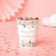 Elegant Blush Pink Floral Gold Script Wedding Paper Cups