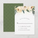 A beautiful RSVP design featuring elegant typography and a border of pink watercolor flowers. Behind the flowers there is an image of gold confetti. These cards reverse to a simple white pattern on a green background.