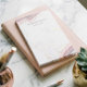 Pink and purple agate notes accented with shimmering gold glitter. This design features our own original, hand-drawn agate illustration in soft blush pink and rich purple hues, enhanced with elegant gold accents for a refined geode-inspired look. Subtle gold foil elements add depth and a touch of glamour to the background. Personalise with your business name or personal name. This beautiful and versatile note design is perfect for a wide range of businesses, including nail salons, hairstylists, makeup artists, beauty professionals, salons, spas, and more.Agate illustration is original, hand-drawn artwork by Moodthology Papery.