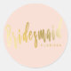 Elegant blush pink & gold bridesmaid classic round sticker