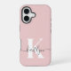 Elegant Blush Pink Grey Script Monogram iPhone 16 Case