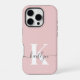 Elegant Blush Pink Grey Script Monogram iPhone Case