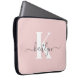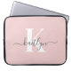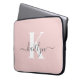 Elegant Blush Pink Grey Script Monogram Laptop Sleeve