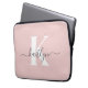 Elegant Blush Pink Grey Script Monogram Laptop Sleeve