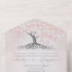 Elegant Blush Pink Heart Leaf Tree Wedding All In One Invitation