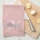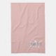 Elegant blush pink kitchen towel with a white script monogram and a grey name. Personalise with your initial and name.