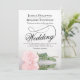 This beautiful wedding invitation features a gorgeous photograph of a single long stemmed pink rose lying on its side reflecting in a pool of water with waves and ripples. The design features a fancy calligraphy script with a long curly tail making it both modern and classic. Elegant, sophisticated and chic way to invite your friends and family to share in your special day. The back of the card has a custom note and QR code directing your guests to your wedding website for details and RSVP.