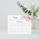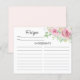 Watercolor Elegant Blush Pink Roses Bridal Shower Recipe Card. Matching items available.
