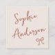 Elevate your branding with this beautifully soft and feminine square business card featuring a light blush pink background, modern handwritten script, and a delicate bow illustration. Perfect for creatives, beauty professionals, boutique owners, photographers, planners, and anyone seeking a warm, elegant aesthetic.