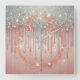 Elegant Blush Pink & Silver Glitter Drip Square Wall Clock