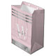 Elegant Blush Pink Silver Striped Monogram Script Medium Gift Bag