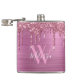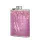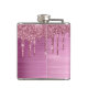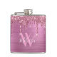 Elegant Blush Pink Sparkle Glitter Drips Monogram Hip Flask