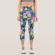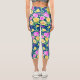 Elegant Blush Pink Yellow Rose Floral Pattern Capri Leggings
