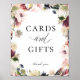 Elegant watercolor flowers and foliage frame in trendy shades of blush pink and plum wine purple, personalized wedding "cards and gifts" sign poster. Modern typography design style mixes script with bold type.