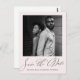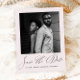 Elegant blush pink and black calligraphy script wedding save the date photo postcard includes your wedding details and one photo on the front, with an arch shape photo and wedding website details with return address on the back of the card. Let friends and family know to reserve your upcoming wedding date with this chic black and white minimalist wedding save the date postcard.