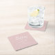 Elegant Blush & White Calligraphy Wedding Square Paper Coaster