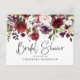 Elegant and pretty blush pink burgundy wine floral bridal shower postcard. On the other side is the shower information that can be customised.