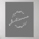 This stylish wall art poster features a minimalist elegant boho botanical wreath in grey. Personalise it with your name in script lettering. Great gift idea.