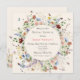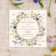 This is an elegant and boho square bridal shower invitation. The design features a colourful and delicate halo of summery wildflower florals in pretty shades of blue, terracotta, pink, purple and yellow. The butterflies and bees add the finishing whimsical and pretty touch.