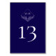 Elegant Boho Leaf Monogram Dark Blue Wedding Table Number