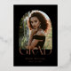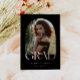 An elegant boho design in black with "GRAD" in rose foil adds a touch of glamour and sophistication to your graduation announcements, elevating them to keepsakes worthy of display. Customisable options include gold and silver foil. A personalised message to loved ones is on the backside to include your accomplishments reflecting the brilliance of your journey through high school.