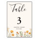 Elegant Boho Weadow Ivory Wildflower Wedding Table Number