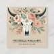 Stand out with this boho western business card featuring a stylish bull skull adorned with pastel florals, exuding rustic charm and modern elegance. Perfect for creative professionals, entrepreneurs, or anyone seeking a unique design with a QR code for easy digital connectivity. The square format adds a contemporary touch, making it ideal for those who appreciate both bohemian and western aesthetics.