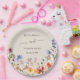 Introducing our minimalist and trendy engagement party Paper Plates, featuring a boho colour with colourful wild flower The delicate black calligraphy adds a touch of sophistication to this minimalist party Paper Plates, making it an ideal choice for a modern wedding celebration.