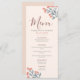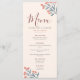 This elegant and modern wedding menu features whimsical wildflower illustrations, with a matching boho floral design on the back that evokes a natural, outdoorsy charm. There is space for you to add your own menu, the couple’s names and date of the ceremony. The neutral palette of this design makes it an ideal choice for summer weddings, boho weddings, rustic weddings, and fall weddings, seamlessly blending into both casual and refined settings. Please find matching items in our wedding suite.